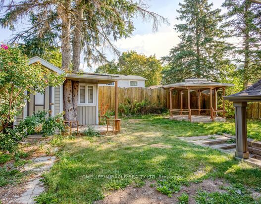 3-Bedroom Detached Home In A Desirable Neighborhood. Hardwood Flooring And Pot Lights Throughout. Open Concept Kitchen With Breakfast Island, Dining Area & Stainless Steel Appliances. Bright And Spacious Living Room With Large Window. Family Room With 3-Piece Bath Walk-Out To Backyard Potential For Nanny Suite. Good Sized Lot Features Nice Garden With Gazebo And Shed. Driveway Can Accommodate Parking For 5 Cars.